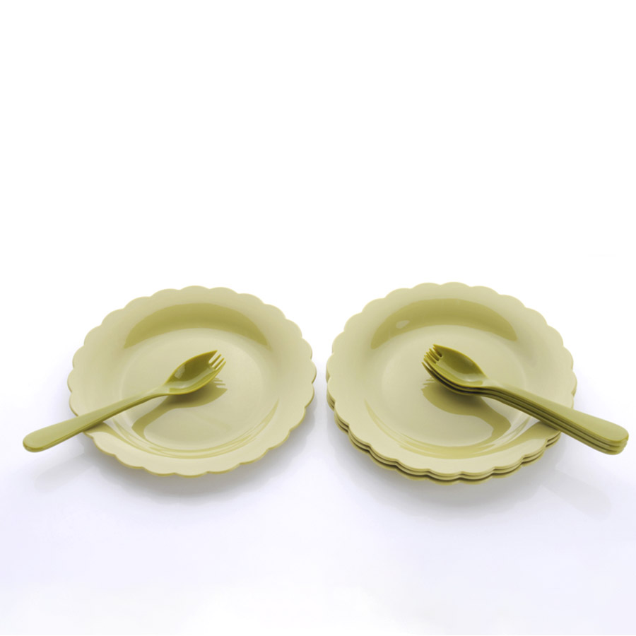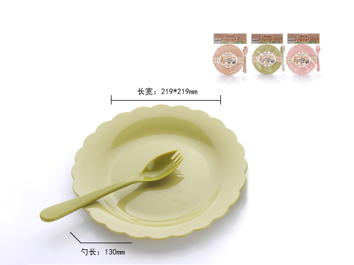 得力熊歐式小號花邊圓形餐盤(4pcs)(配4pcs叉匙)