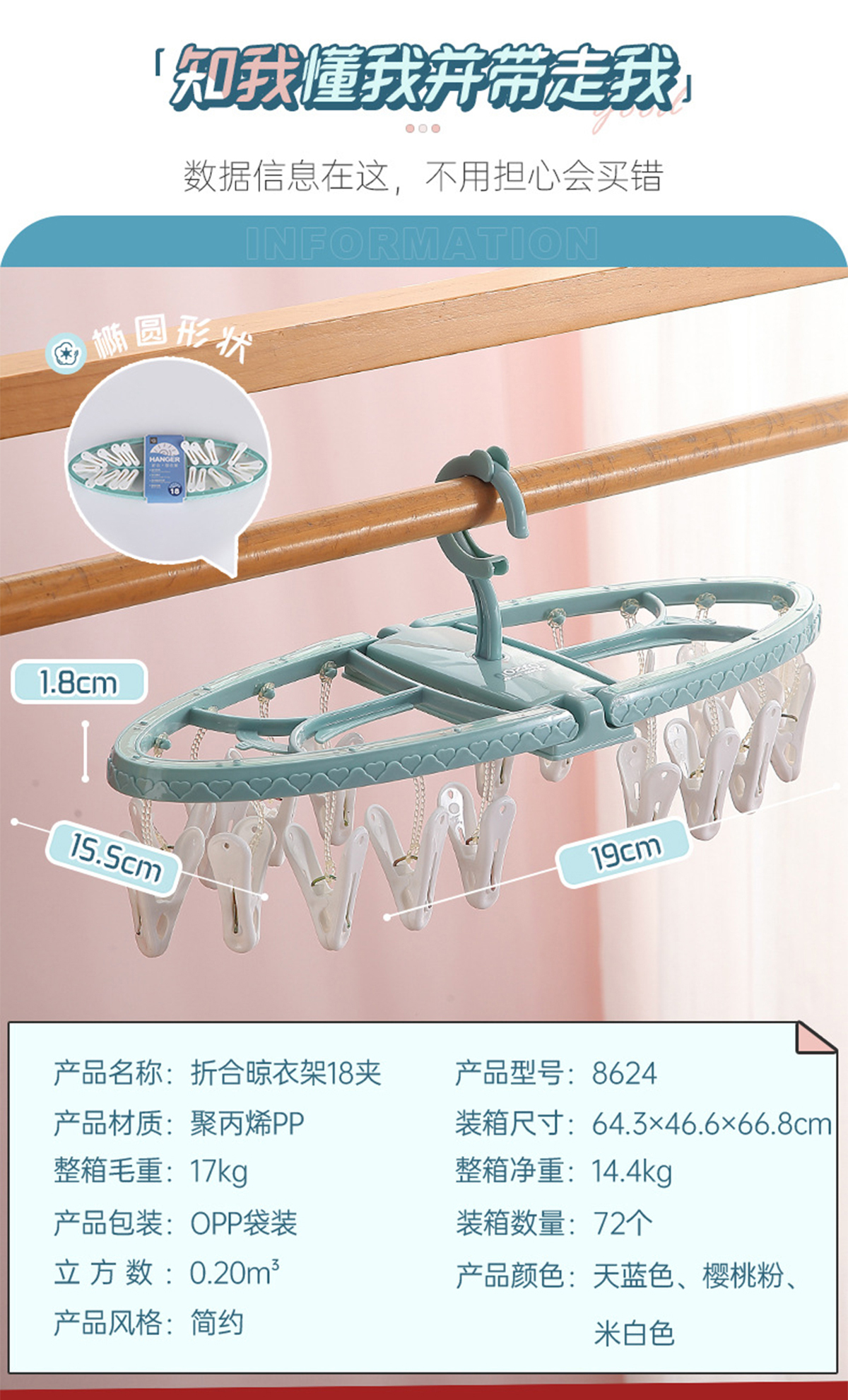 折合晾衣架18夾  2023年新色