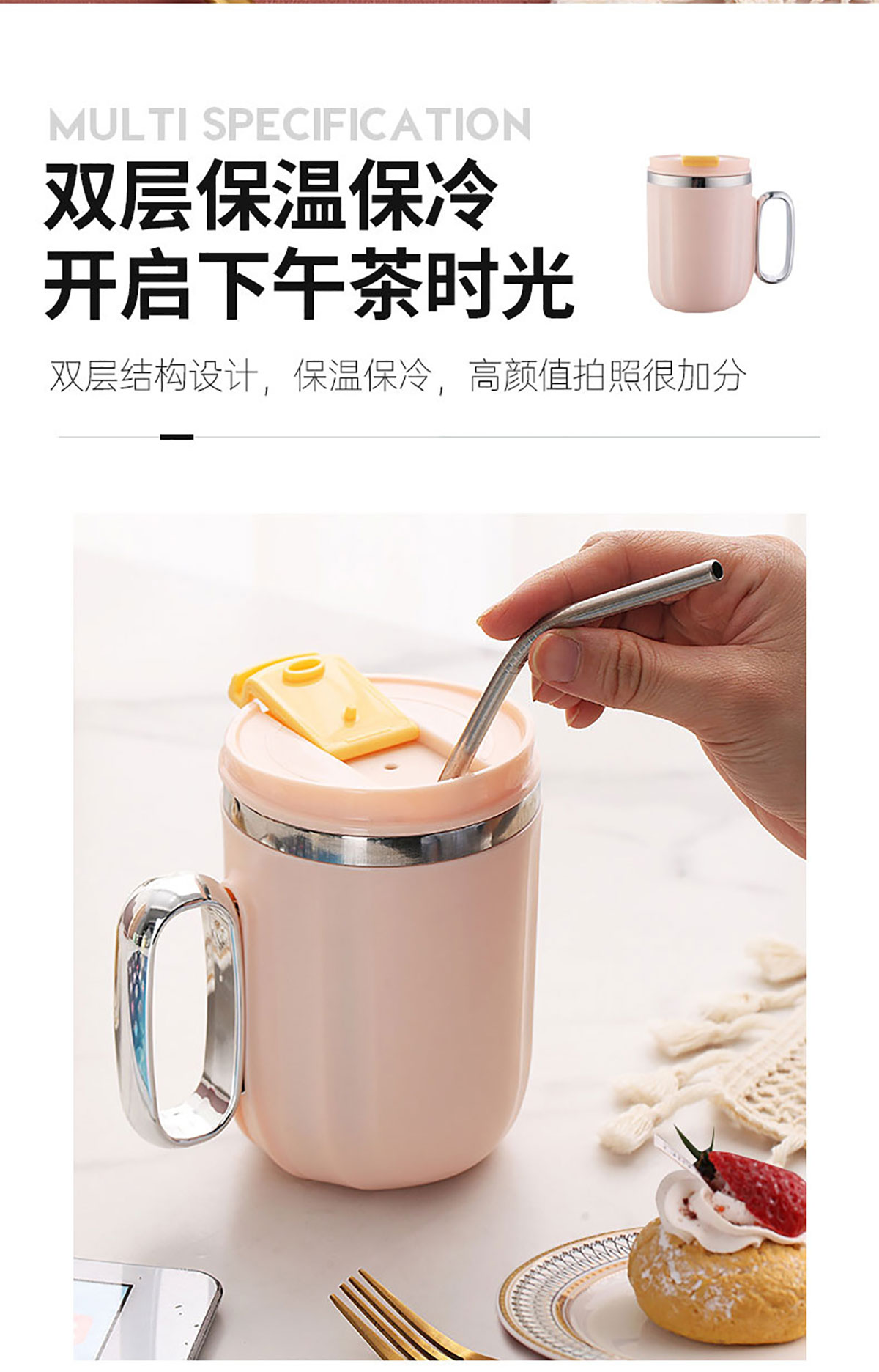 400ml馬卡龍翻扣304不銹鋼馬克杯(帶手柄鍍銀)