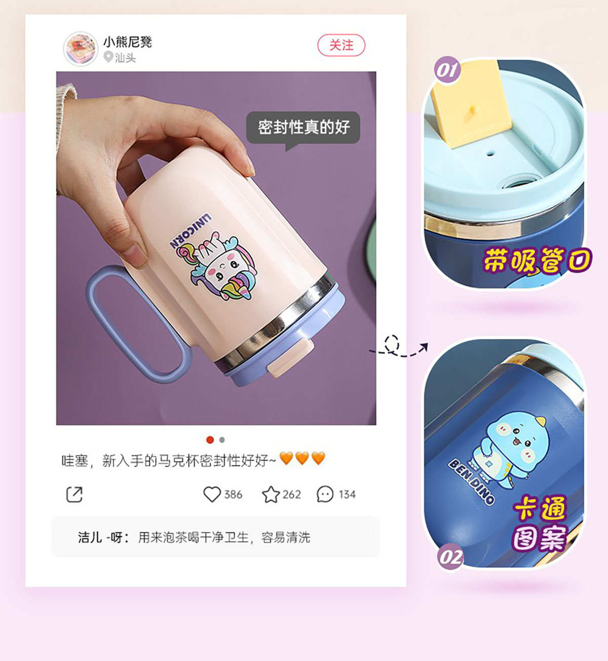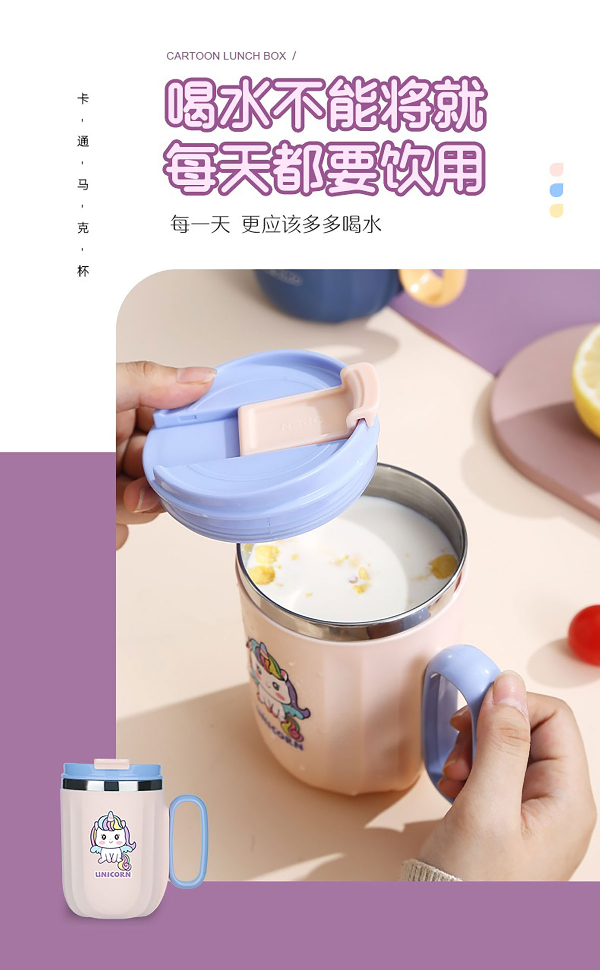 400ml萌趣304不銹鋼翻扣保溫杯(帶手柄)