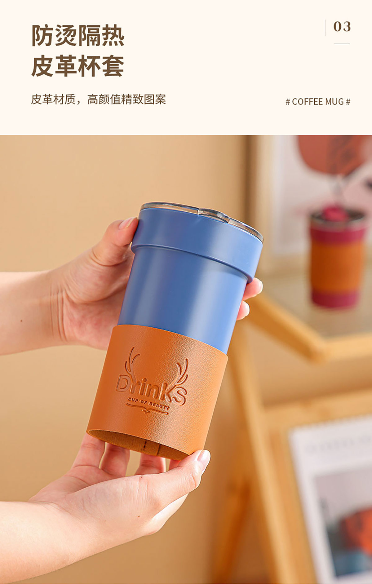 皮套防燙帶蓋咖啡杯(塑料內(nèi)膽)450ml