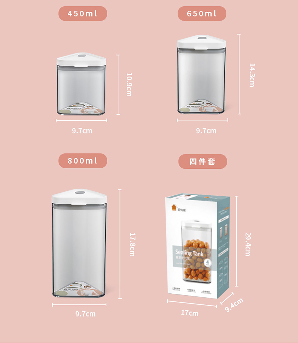 睿思三角形密封罐(450ml/650ml/800ml) 老色/新色