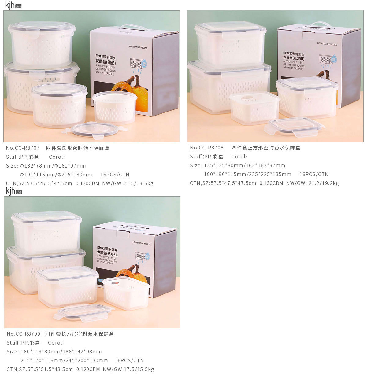 CC-R8709(正方形):135*135*80mm/163*163*97mm/190*190*115mm/225*225*135mm