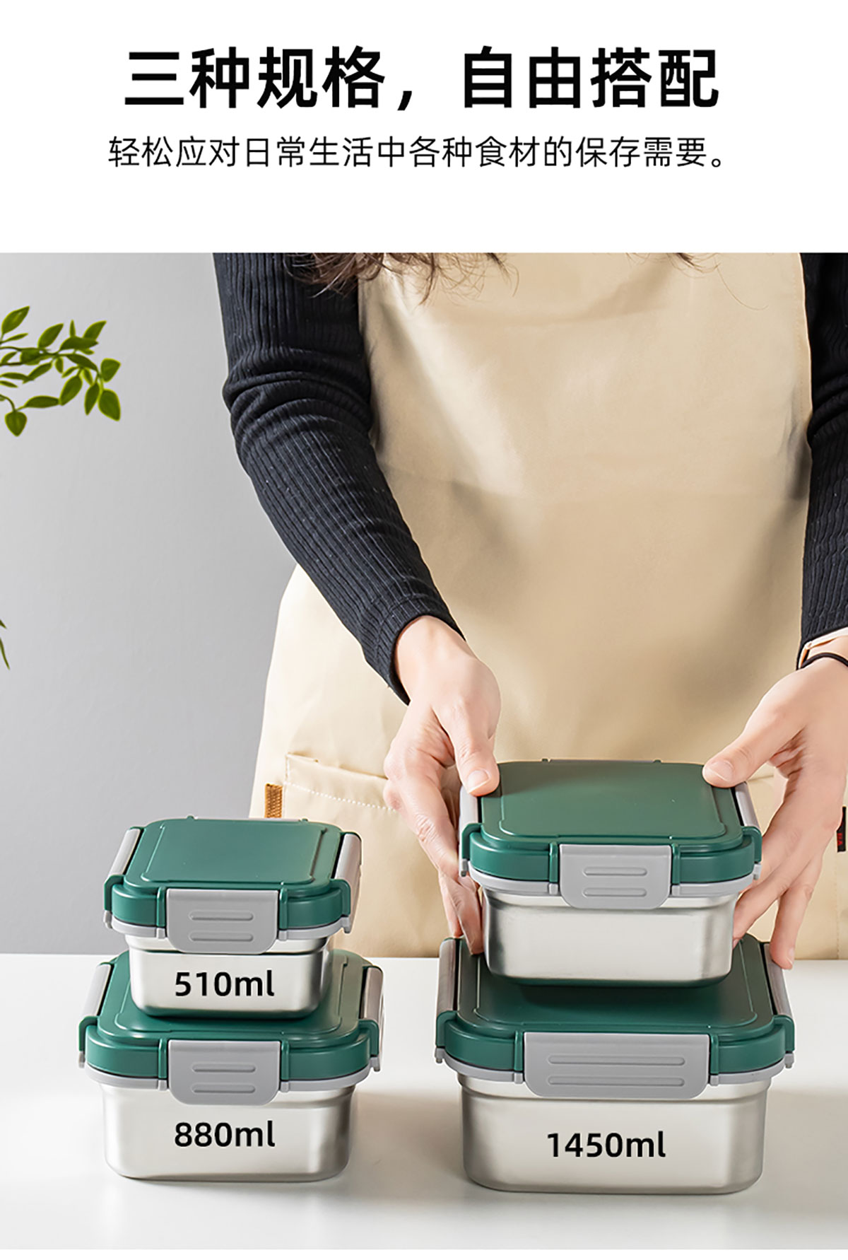 盒其新鮮不銹鋼密封盒S510ml/M880ml/L1.45L