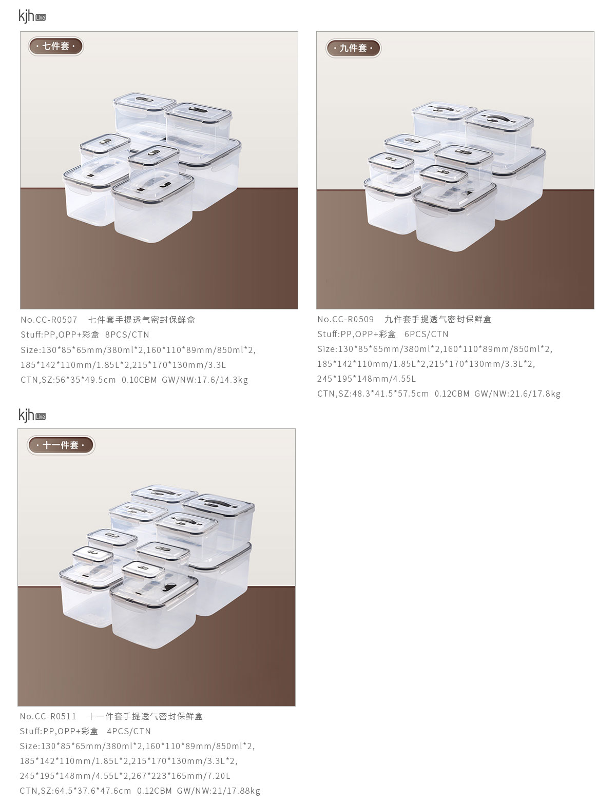 三件/四件/五件/六件/七件/九件/十一件套手提透氣密封保鮮盒