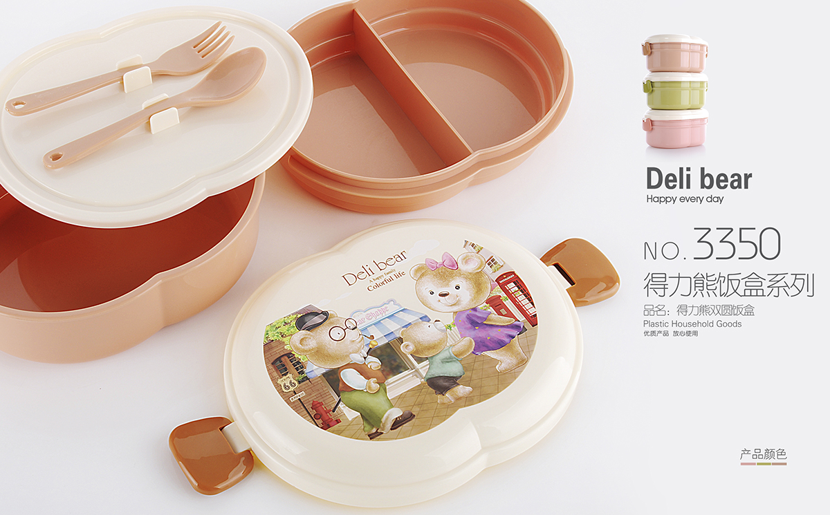 得力熊雙圓飯盒