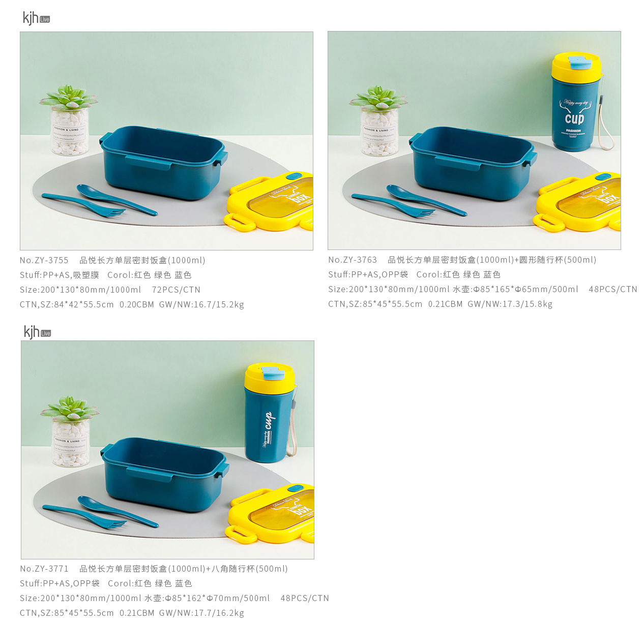 ZY-3763:200*130*80mm/1000ml 水壺:Ф85*165*Ф65mm/500ml