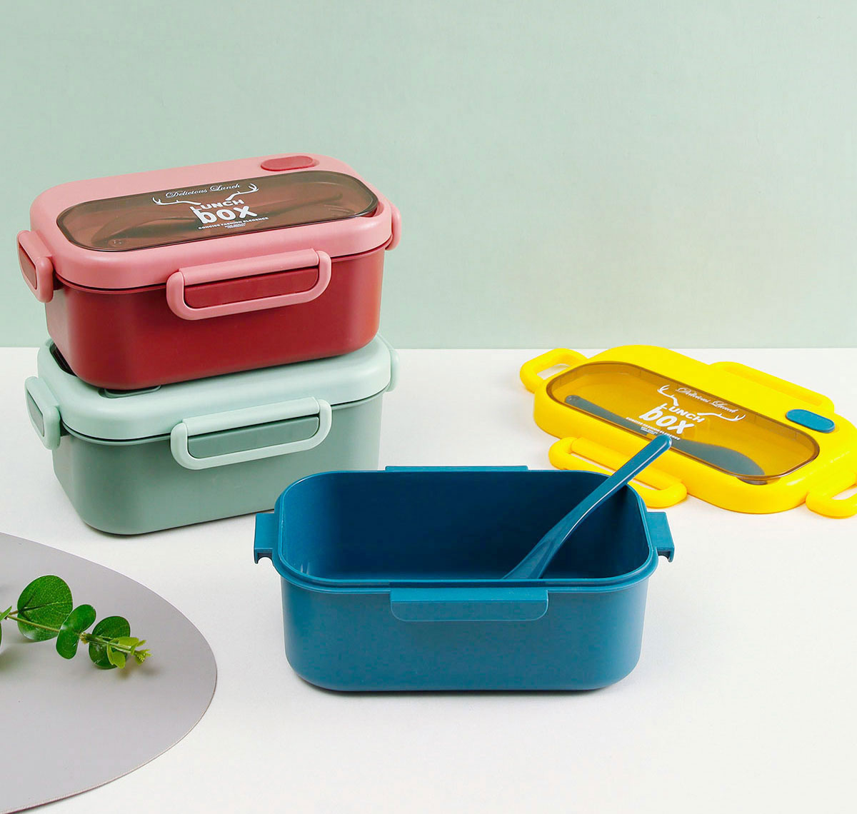 品悅長方單層密封飯盒(1000ml)+圓形/八角隨行杯(500ml)