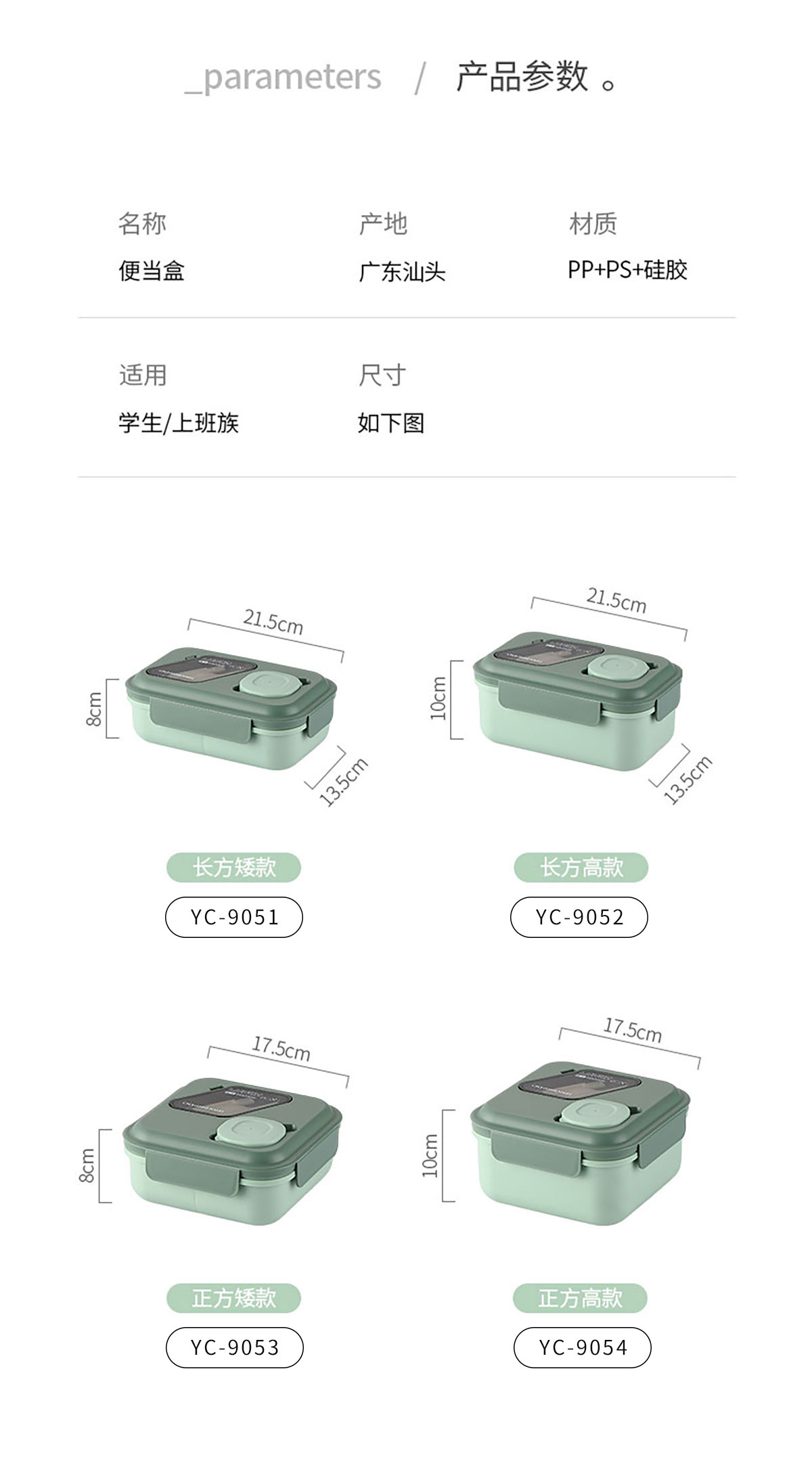 Size: YC-9051(長(zhǎng)方形):215*135*80mm/1300ml