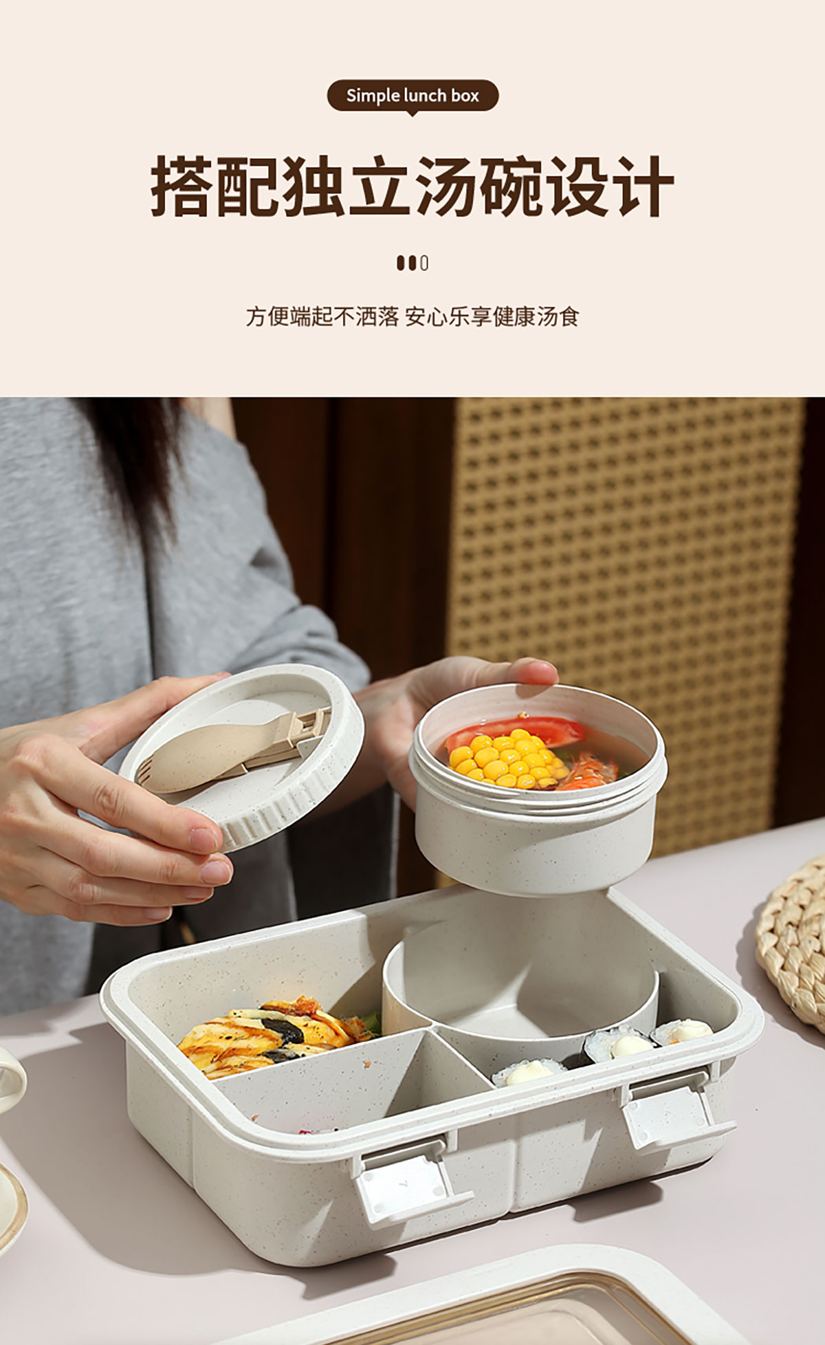 Size: 飯盒:215*160*71mm/1250ml 湯碗:直徑96*51mm/250ml