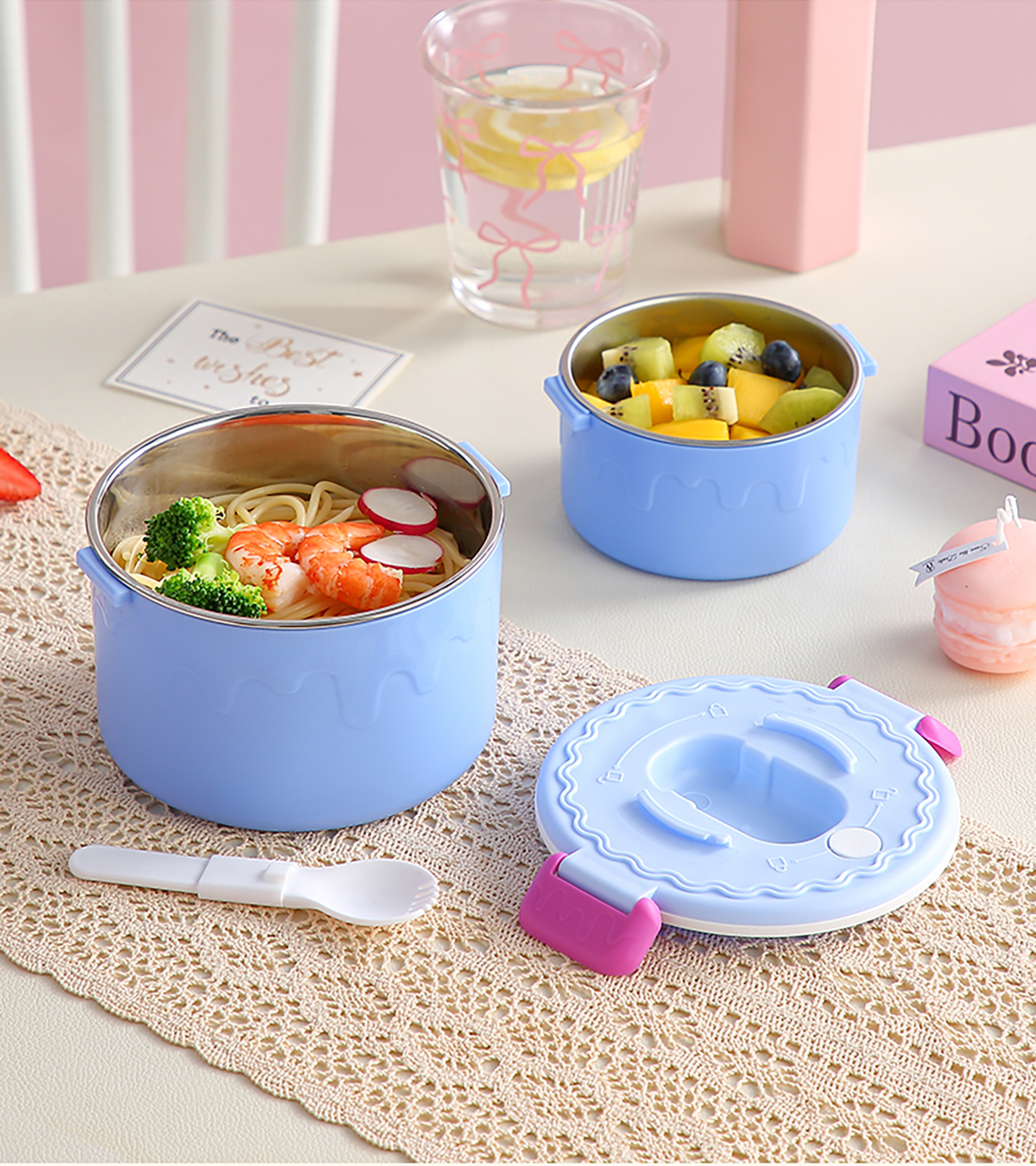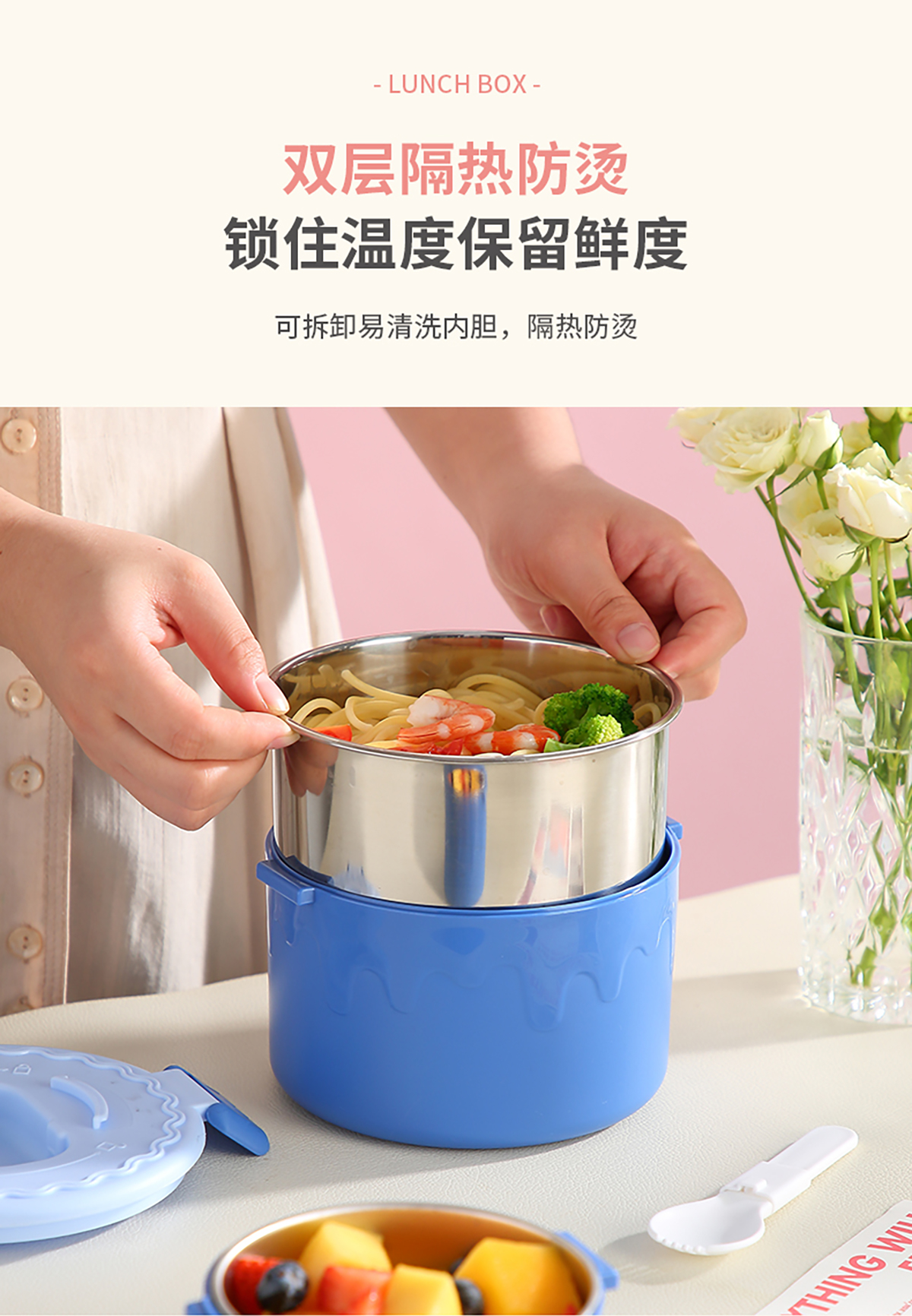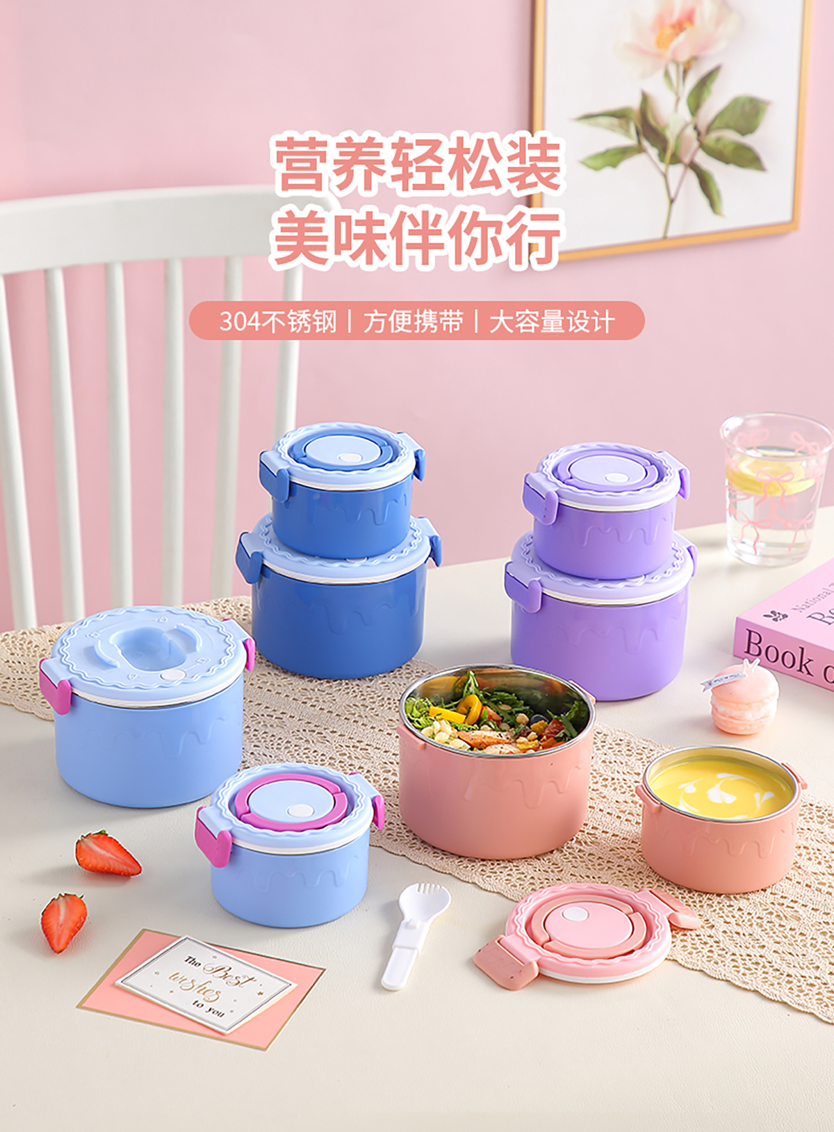 蛋糕圓形不銹鋼雙層飯盒950ml+350ml