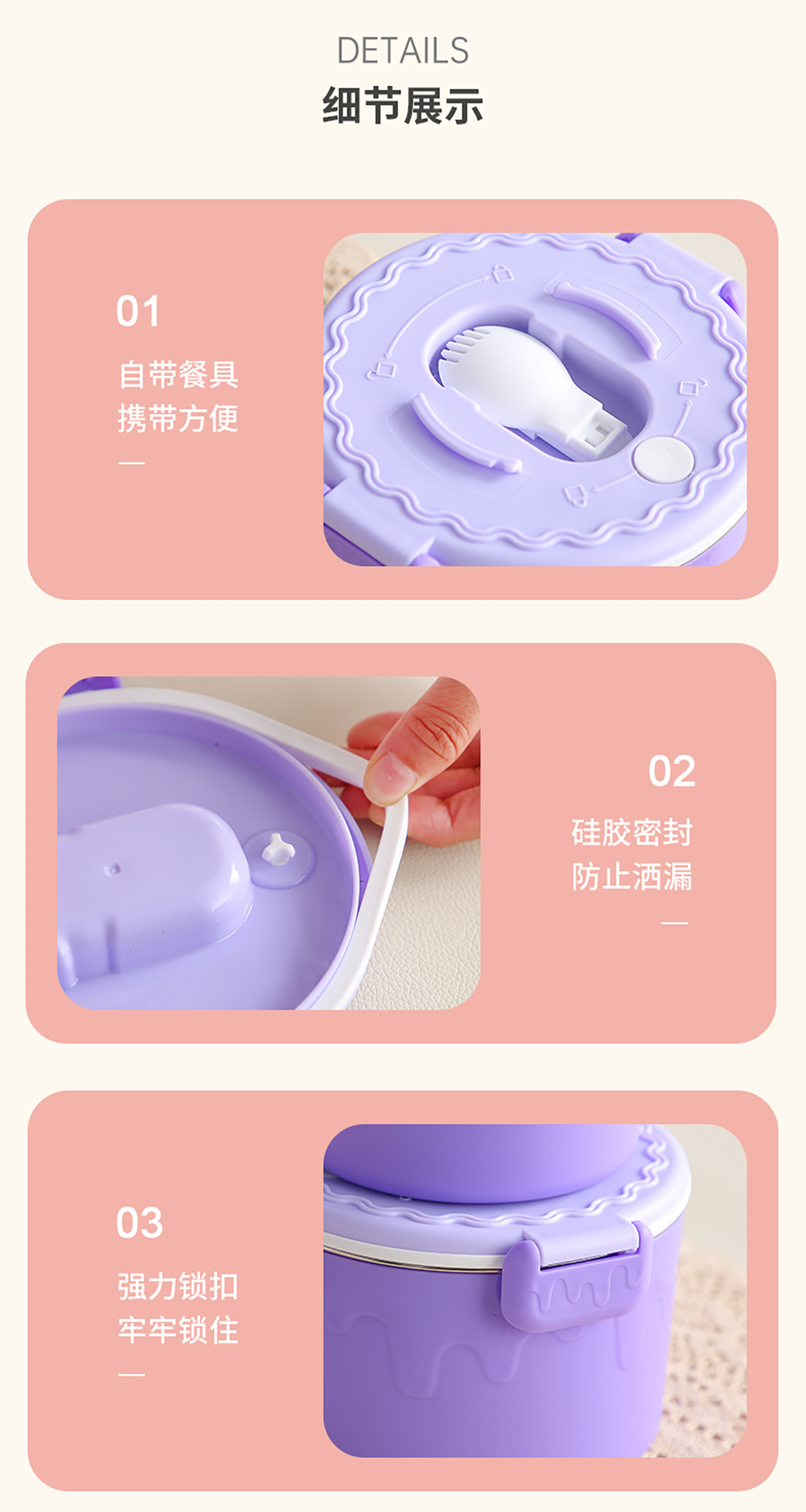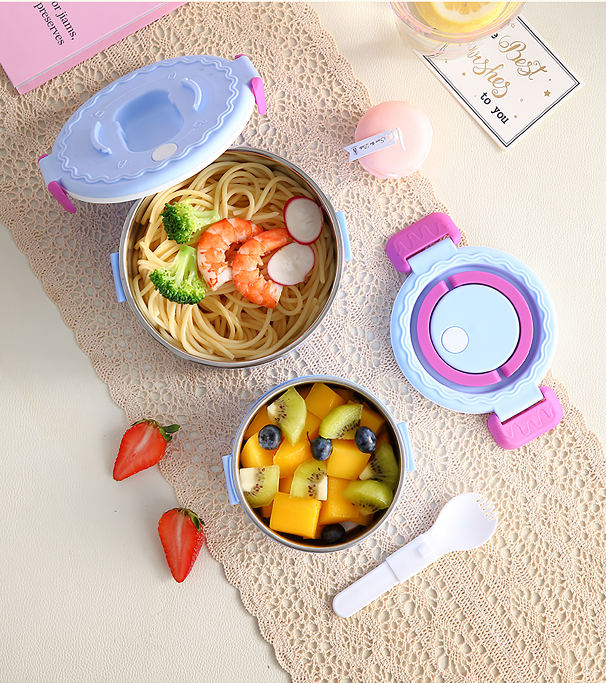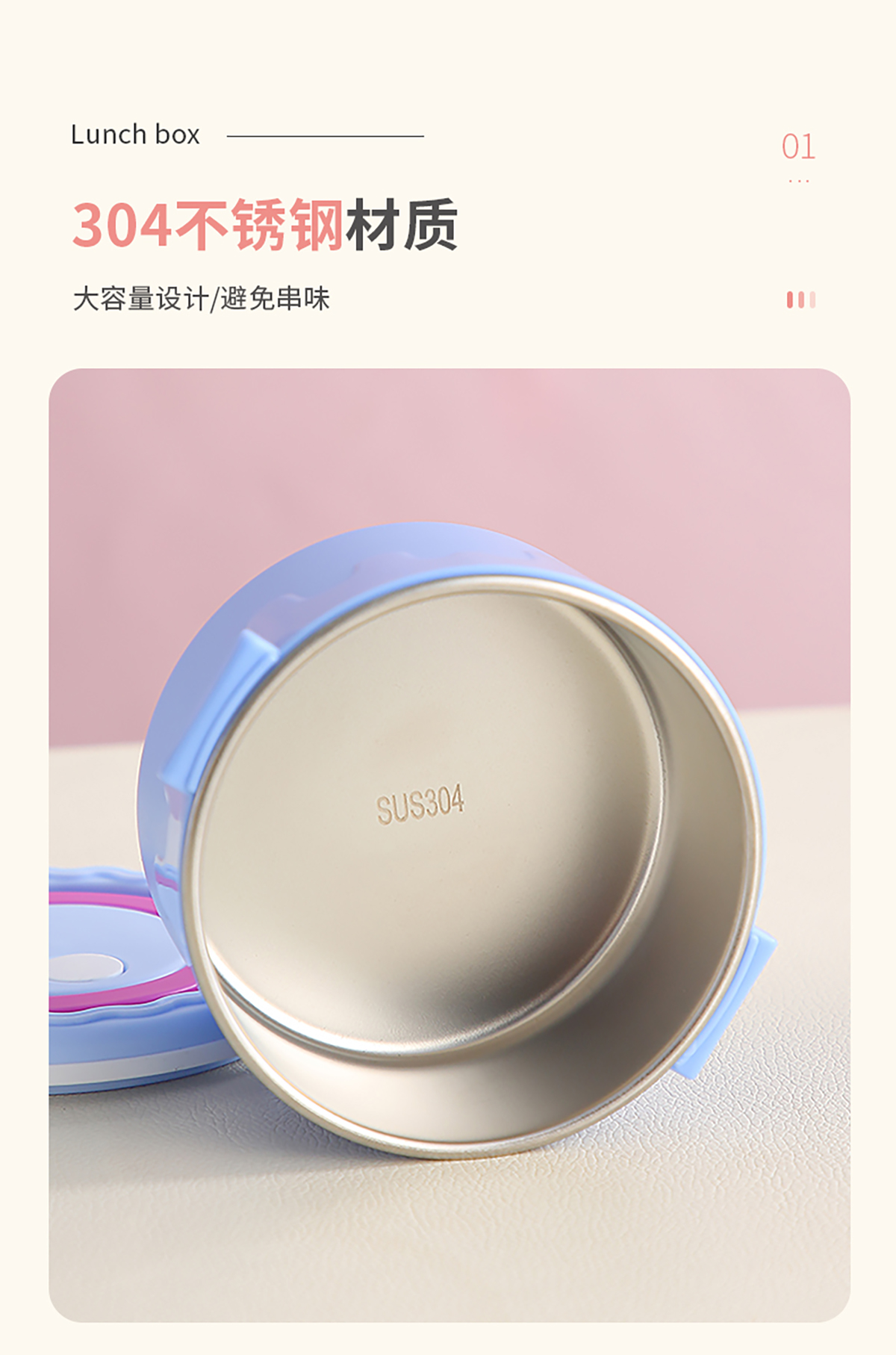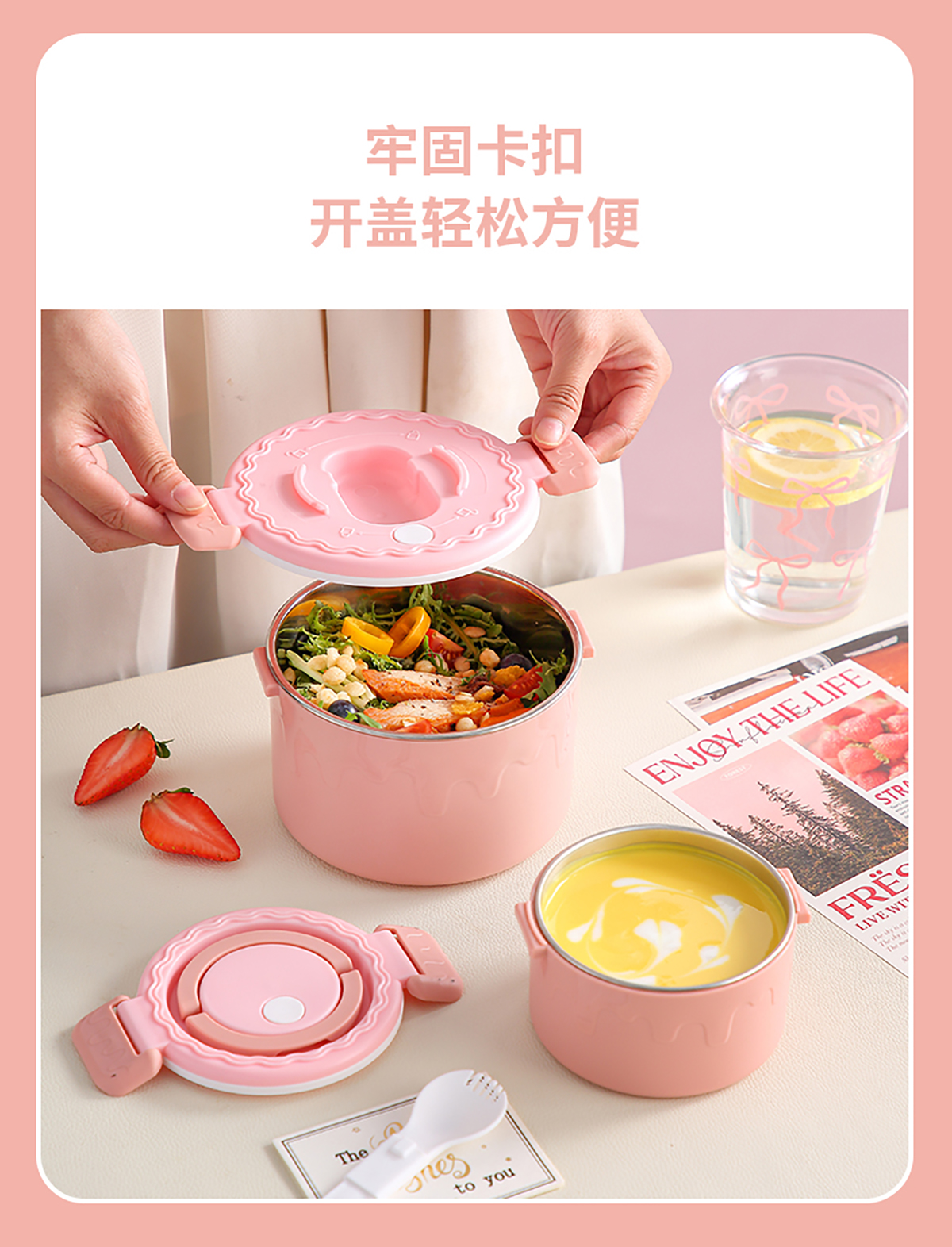 蛋糕圓形不銹鋼雙層飯盒950ml+350ml