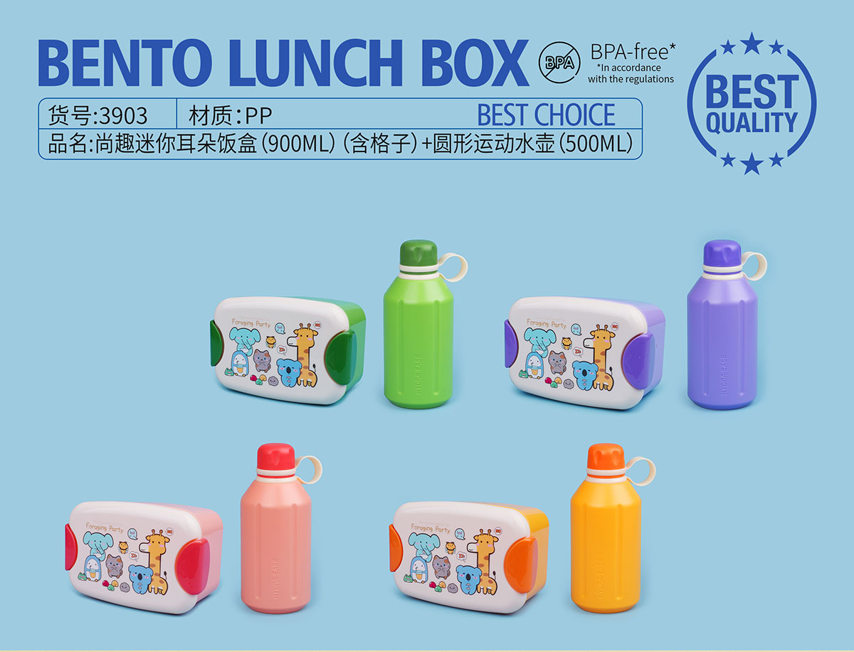 尚趣迷你耳朵飯盒(900ml)(含格子)+圓形運動水壺(500ml)