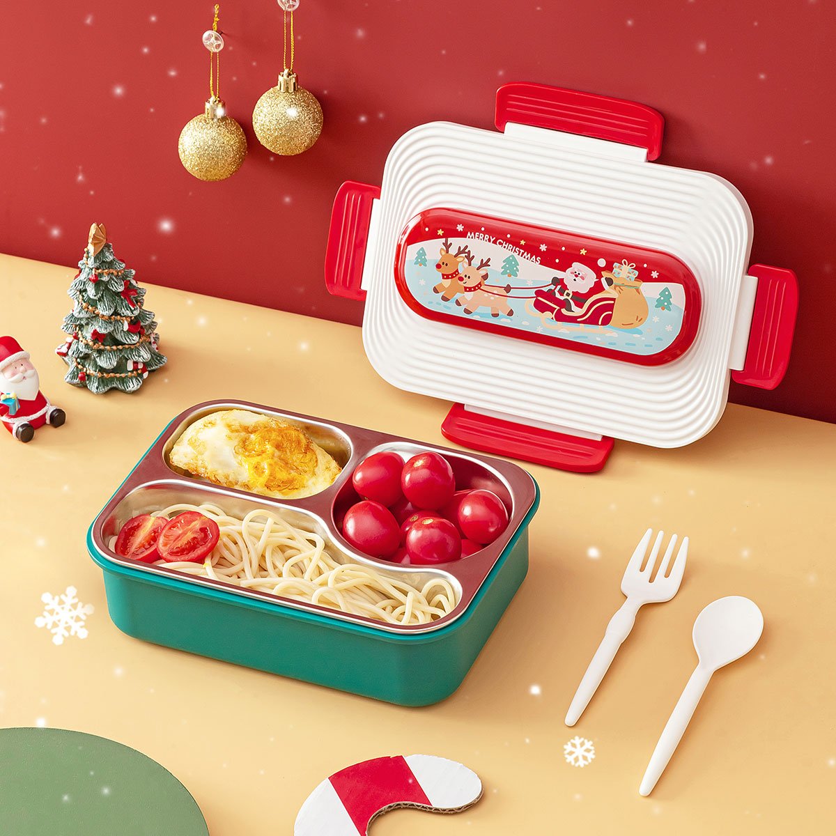 圣誕三格不銹鋼飯盒