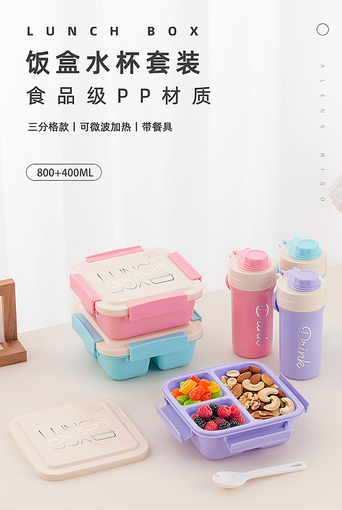 清新方形飯盒水壺套裝800ml+400ml