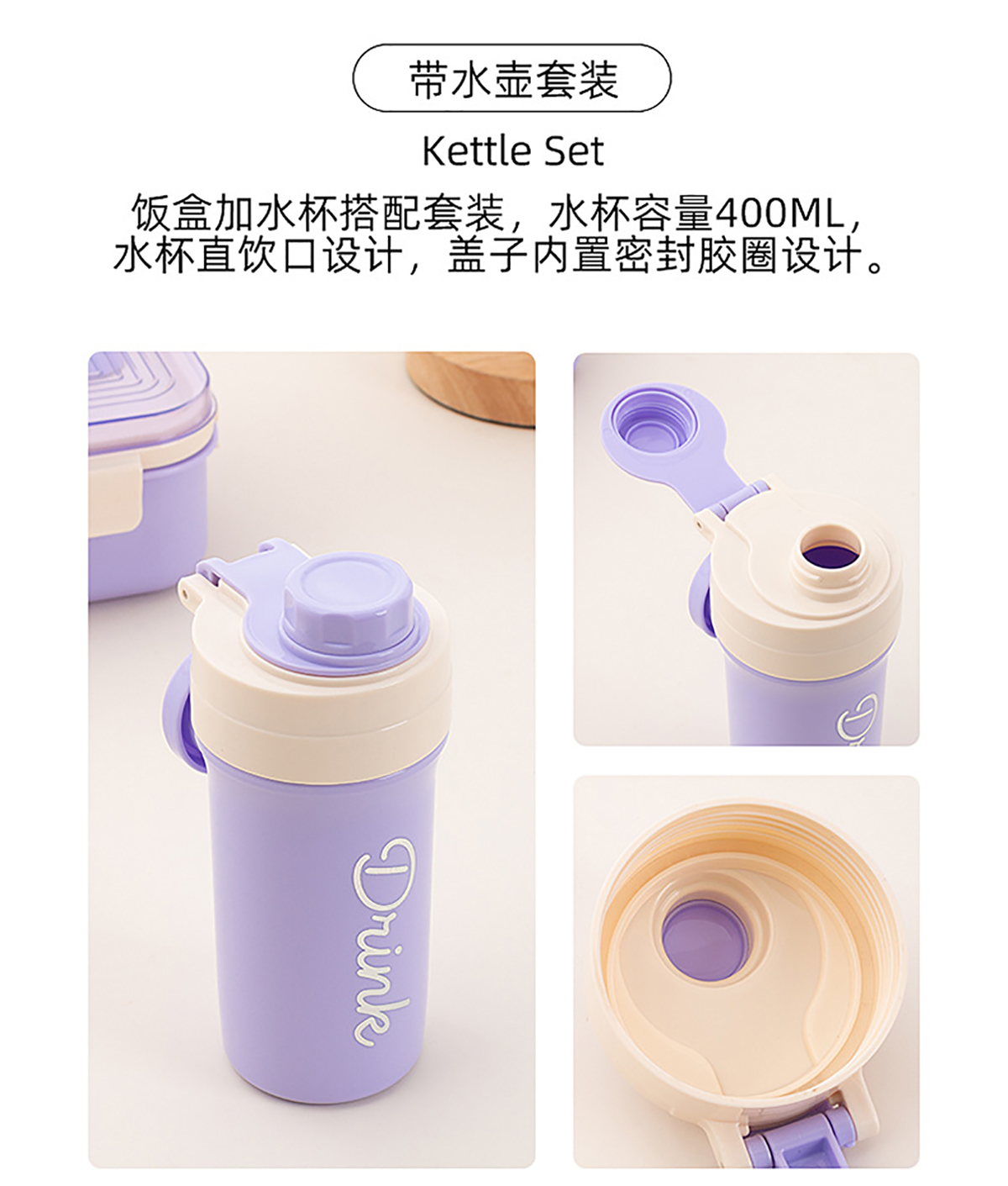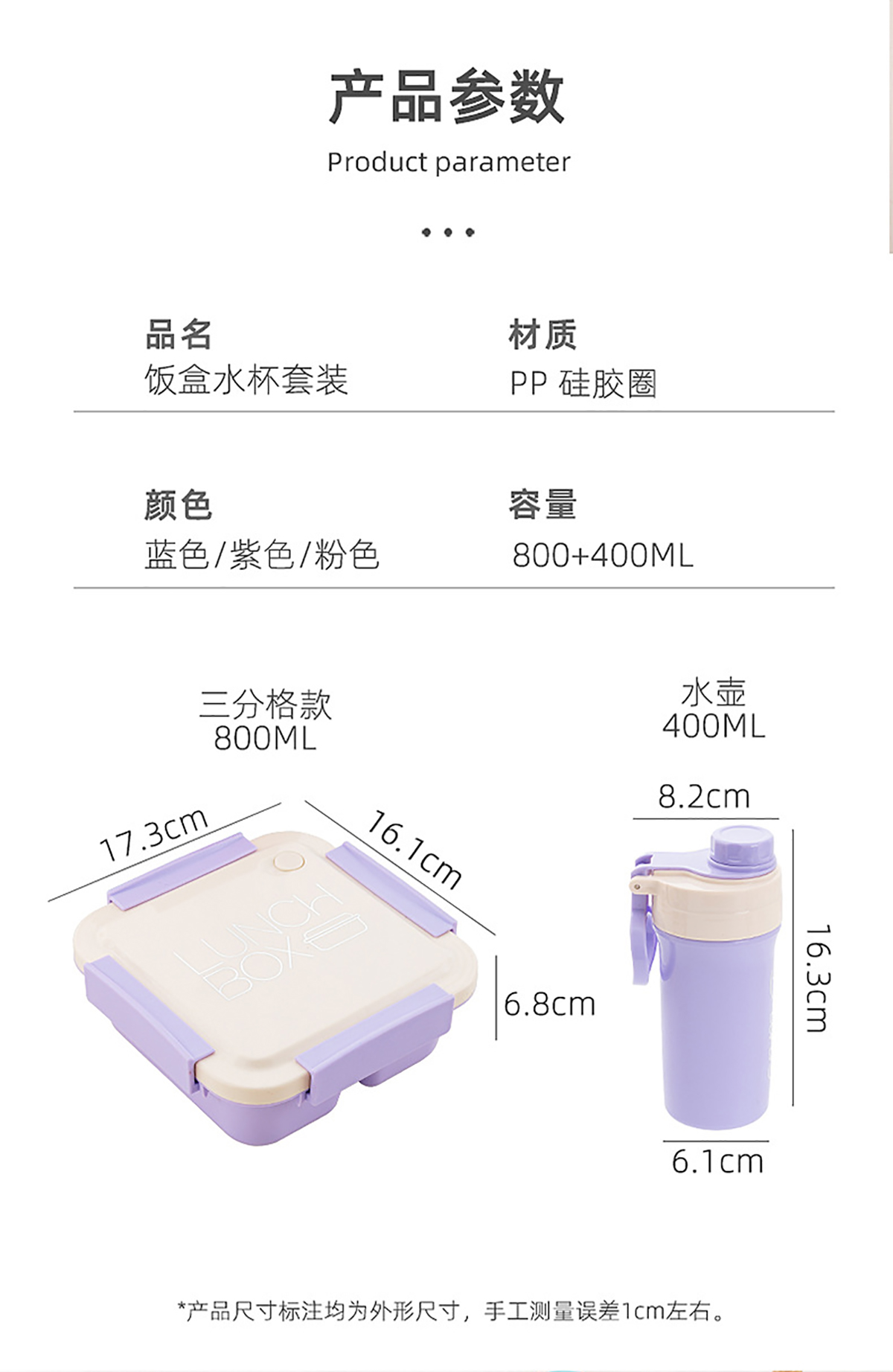 Size: 飯盒:173*161*68mm/800ml 水壺:φ82*61*163mm/400ml