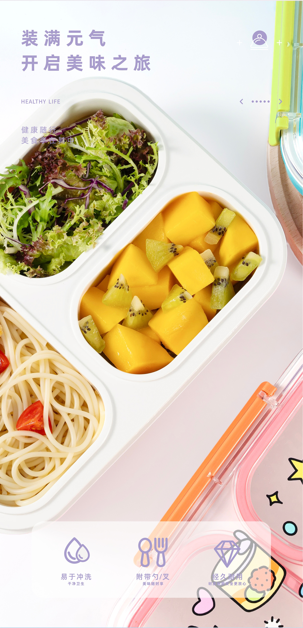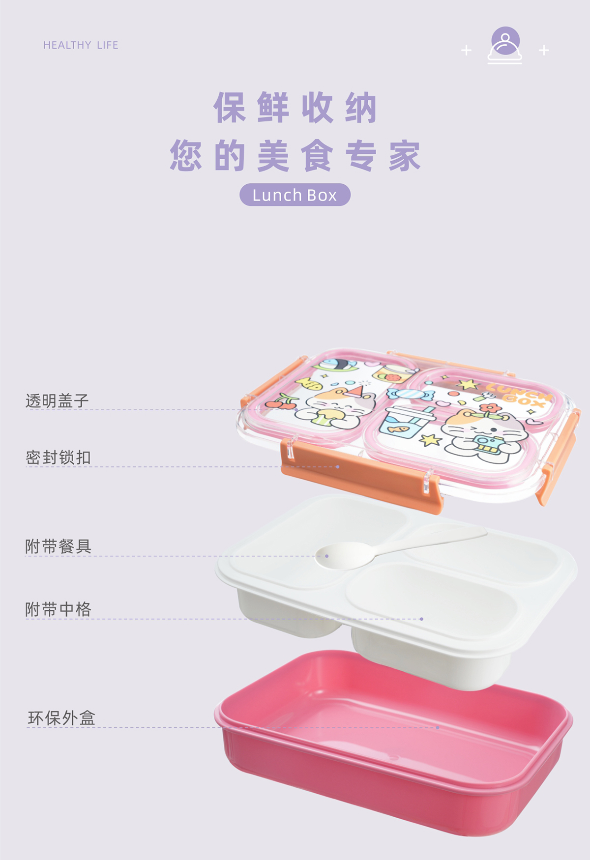 趣繪分格餐盒(帶餐具)